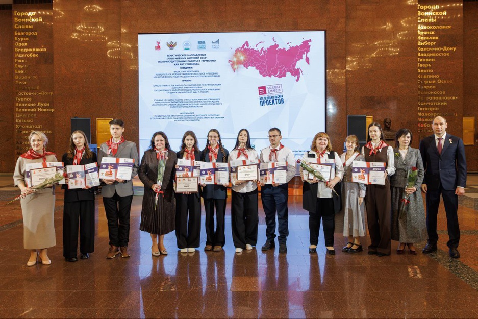 В Зале Полководцев Музея Победы в Москве состоялась торжественная церемония награждения победителей и призеров Всероссийского конкурса исследовательских проектов «Без срока давности» и Всероссийского фестиваля методических разработок по кинопедагогике «Лента памяти».